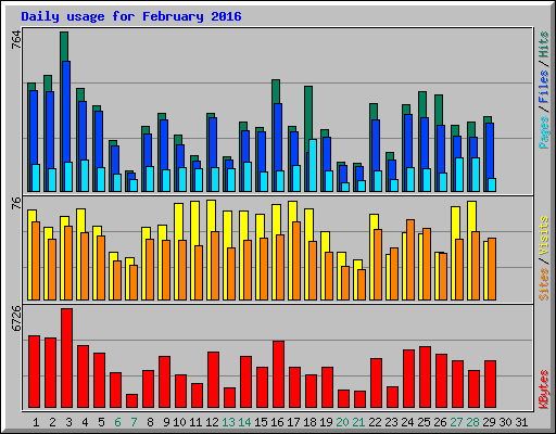 | 日 | Hits | Files | Pages | Visits | Sites | KBytes | ||||||