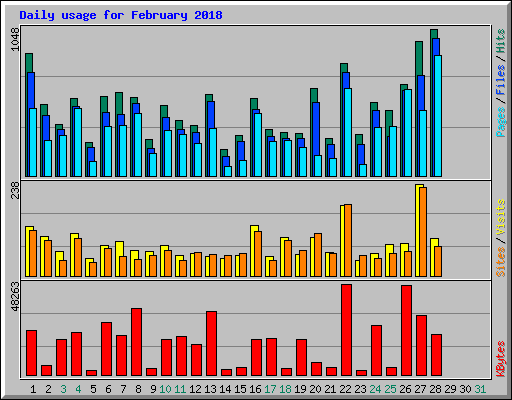 | 日 | Hits | Files | Pages | Visits | Sites | KBytes | ||||||